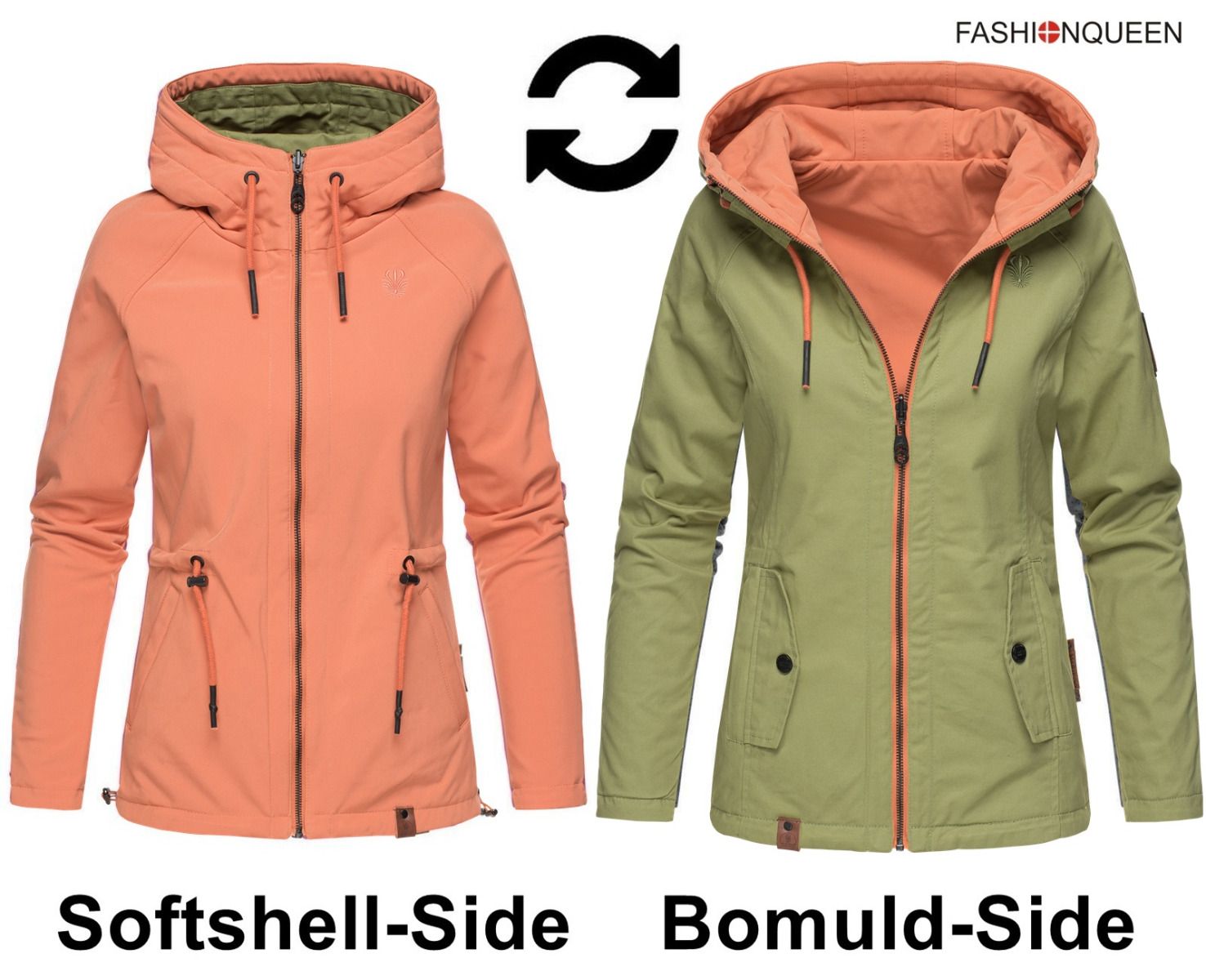 Flot vendejakke, som har 2 forskællige look Softshell og Bomuld