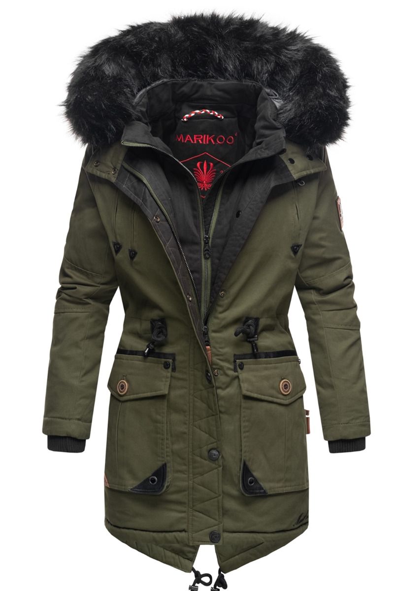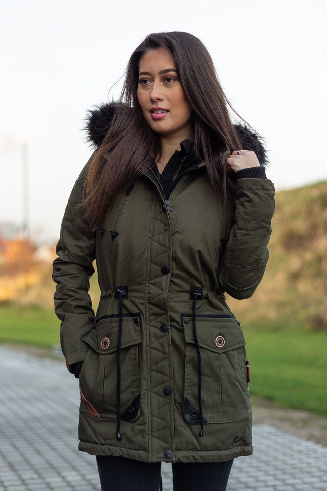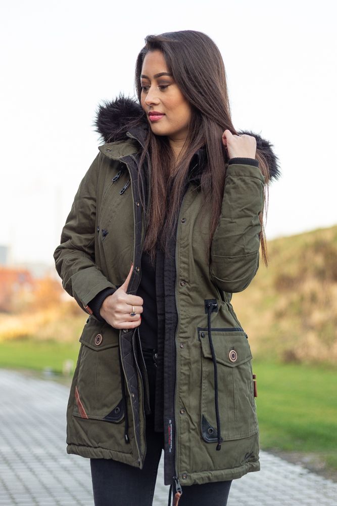 Dame Vinter jakke med sort pels - Kugel Grøn