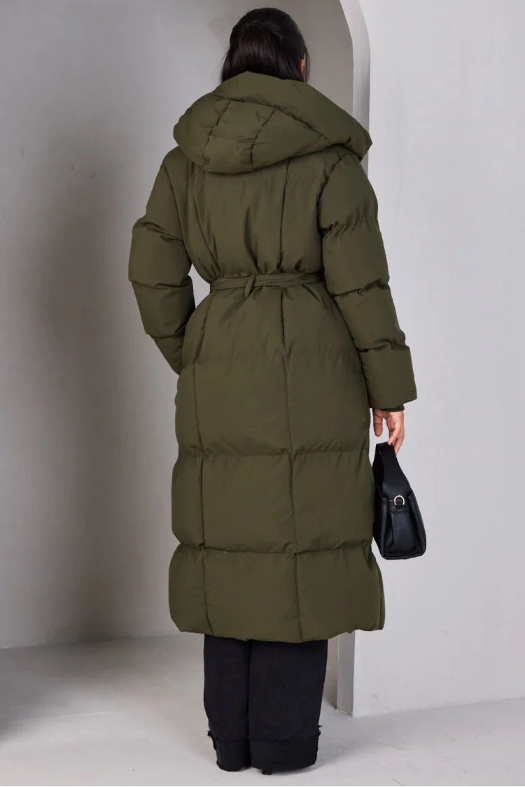 Dam Vinterjacka lång ljus Oversized med luva i Olive