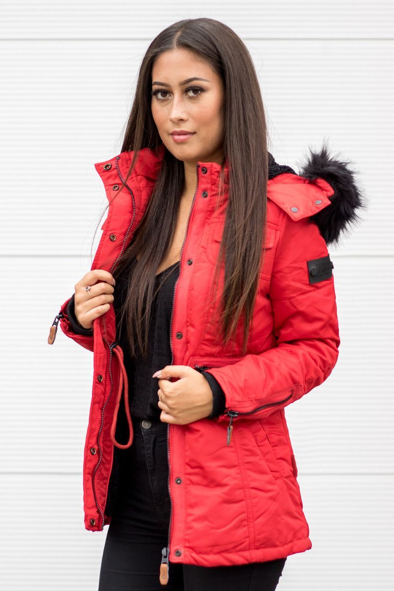 Varm vinterjakke, med mange detaljer og fyldig pels krave / hætte.
